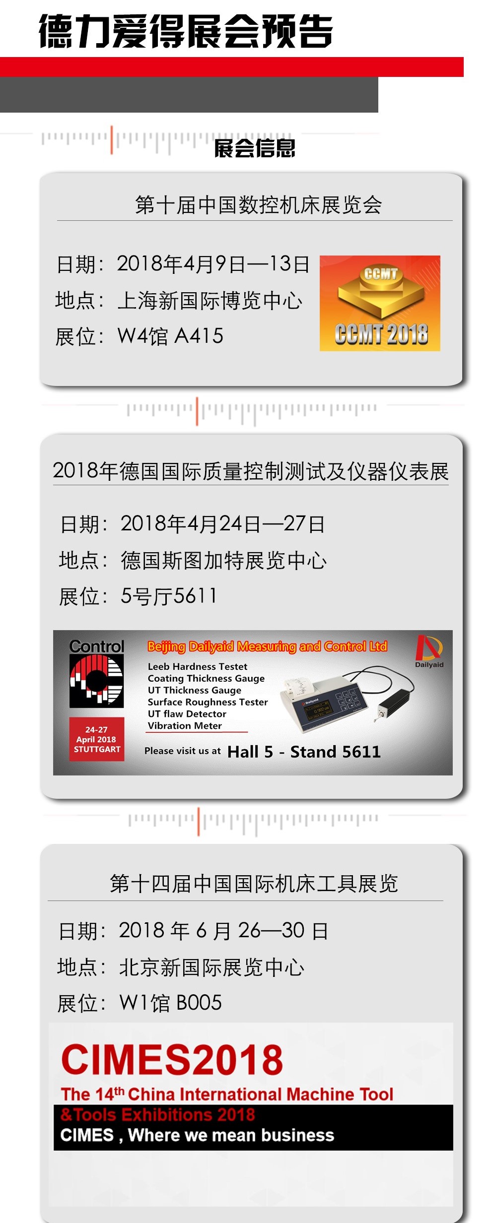 2018年是互相交流,共同進步的一年。德力愛得將會如期參加以上展會,屆時歡迎