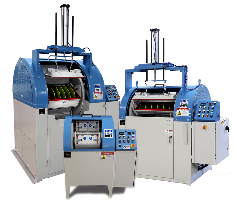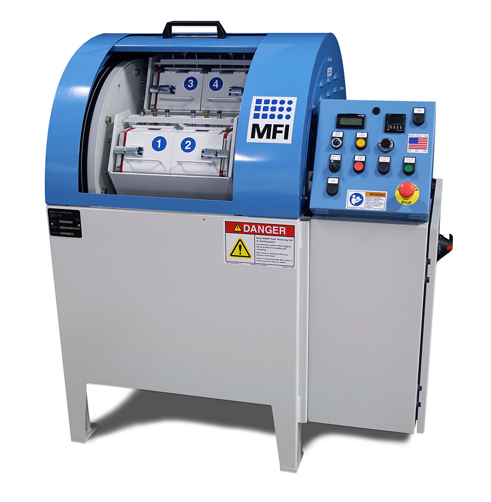離心式筒式精加工機(jī)采用“費(fèi)里斯輪”原理。四桶中的每一個(gè)裝滿(mǎn)大約50-80%的充滿(mǎn)介質(zhì)、部件、水和化合物。